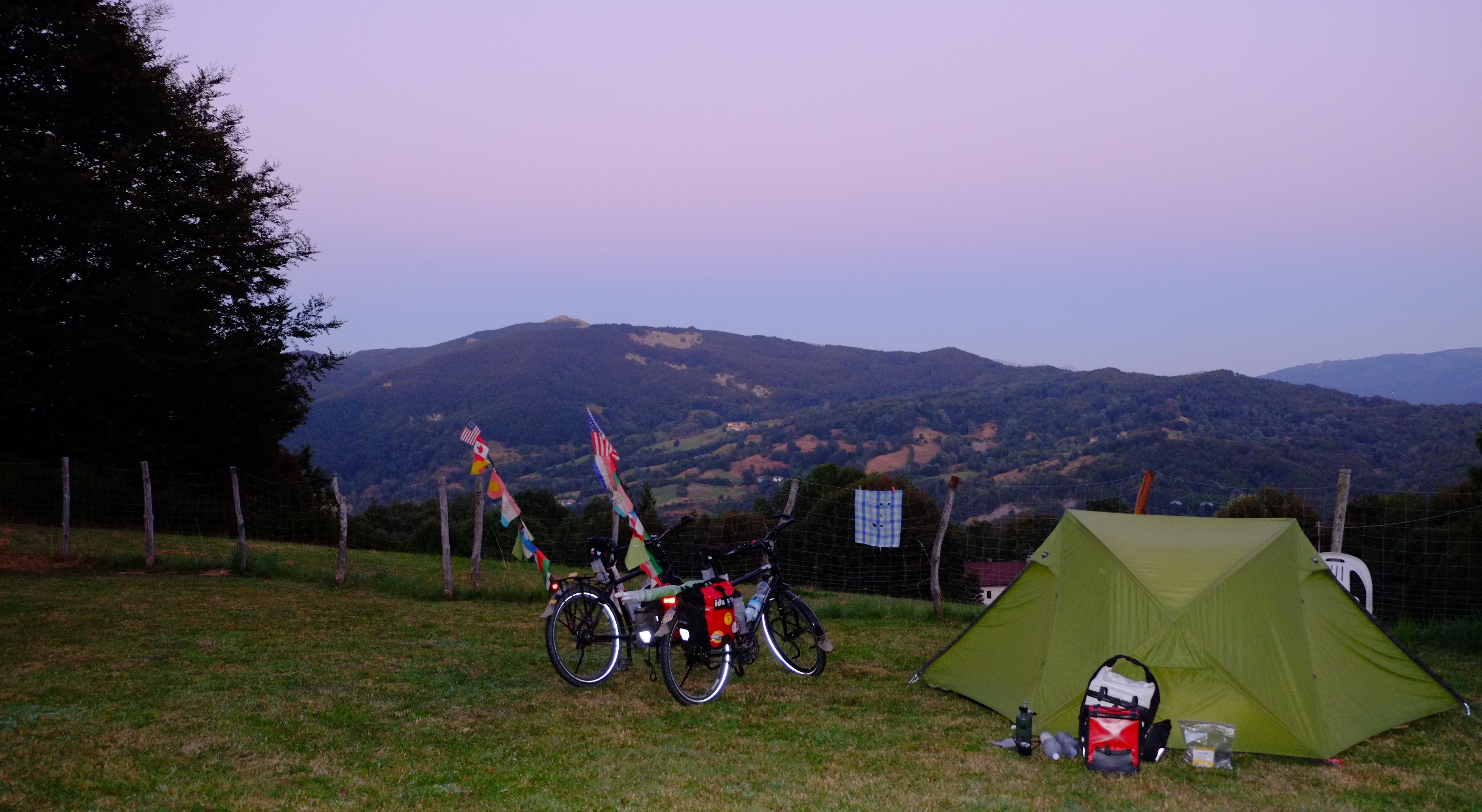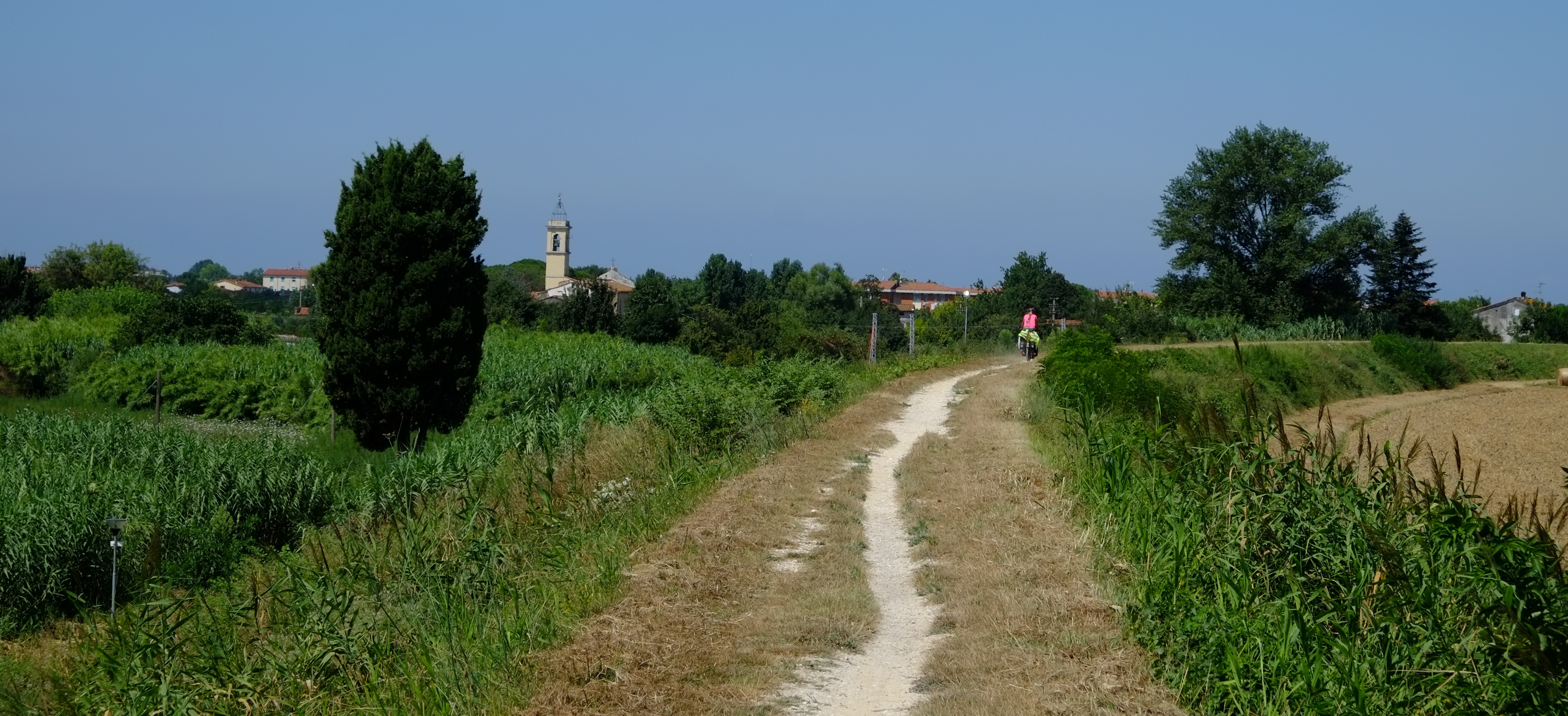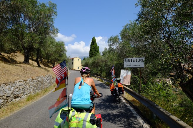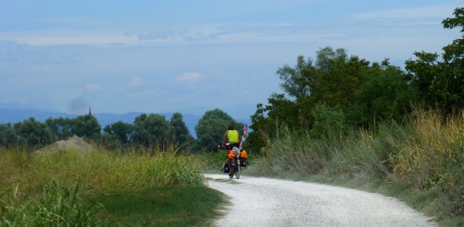 Nach drei Wochen am Meer packten wir dann wieder, um langsam in Richtung Norden zu radeln. Quer durch die Toskana und über die Apenninen in Richtung Venedig und Verona. Wir zelteten wild, schliefen in einer Kirche und genossen ‘La Dolce Vita’ in Italien und den endlich warmen Sommer. Wir trafen Freunde, von denen wir dachten, sie seien ganz in der Nähe. Allerdings waren sie über 100km entfernt, kamen aber trotzdem auf einen Kaffee vorbei. Eine wunderbares Treffen, direkt am Strand.