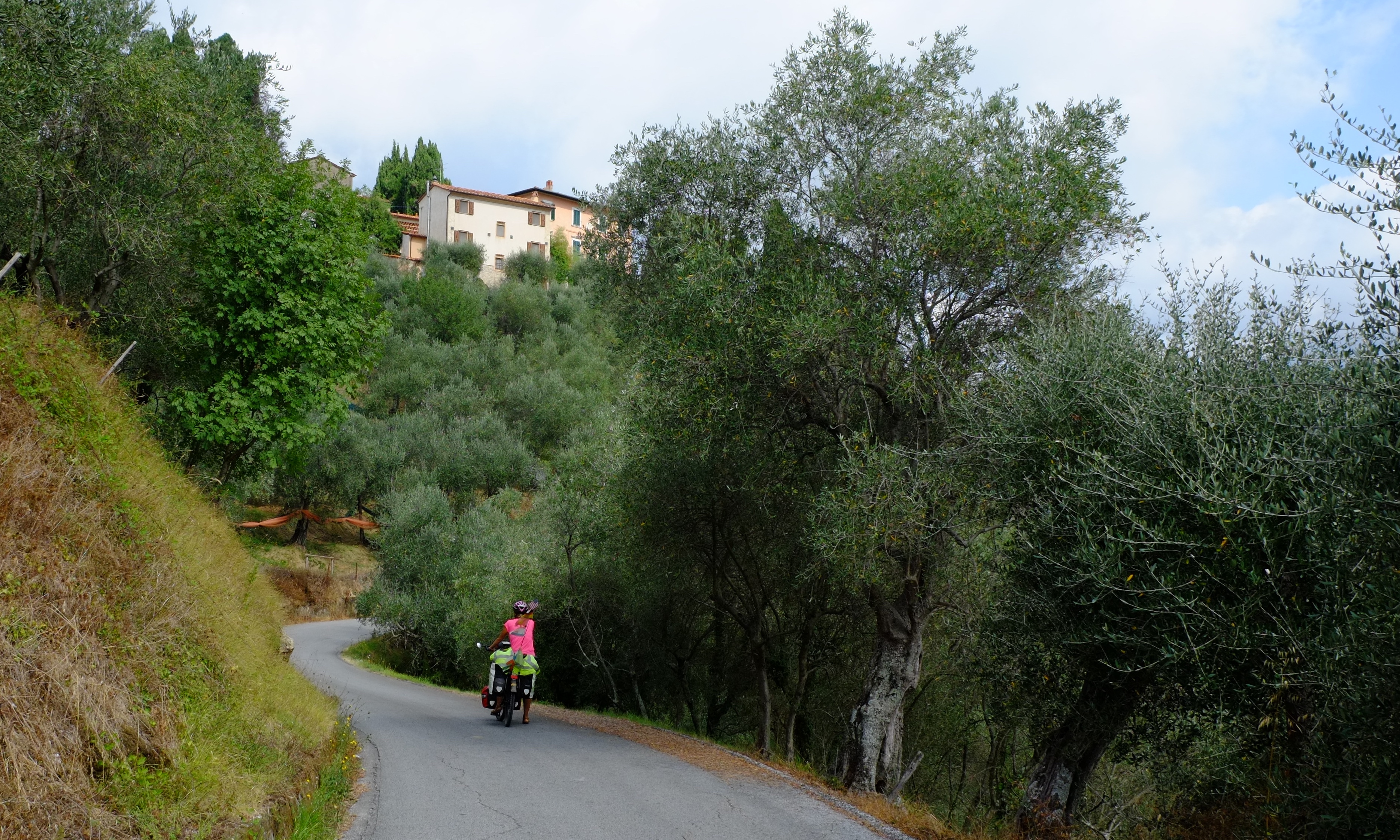 Die Toskana ist extrem hügelig mit sehr steilen Anstiegen, die uns immer wieder an den Oman erinnerten. Somit war selbst die kurze Distanz bis ans Meer bei dieser Hitze kein einfaches Unterfangen. Aber auch das schafften wir und richteten unser vorübergehendes Zuhause für die nächsten drei Woche auf einem Campingplatz ein. Eigentlich wollten wir nur eine Woche bleiben, aber wie so oft änderten sich hier unsere Pläne wieder.