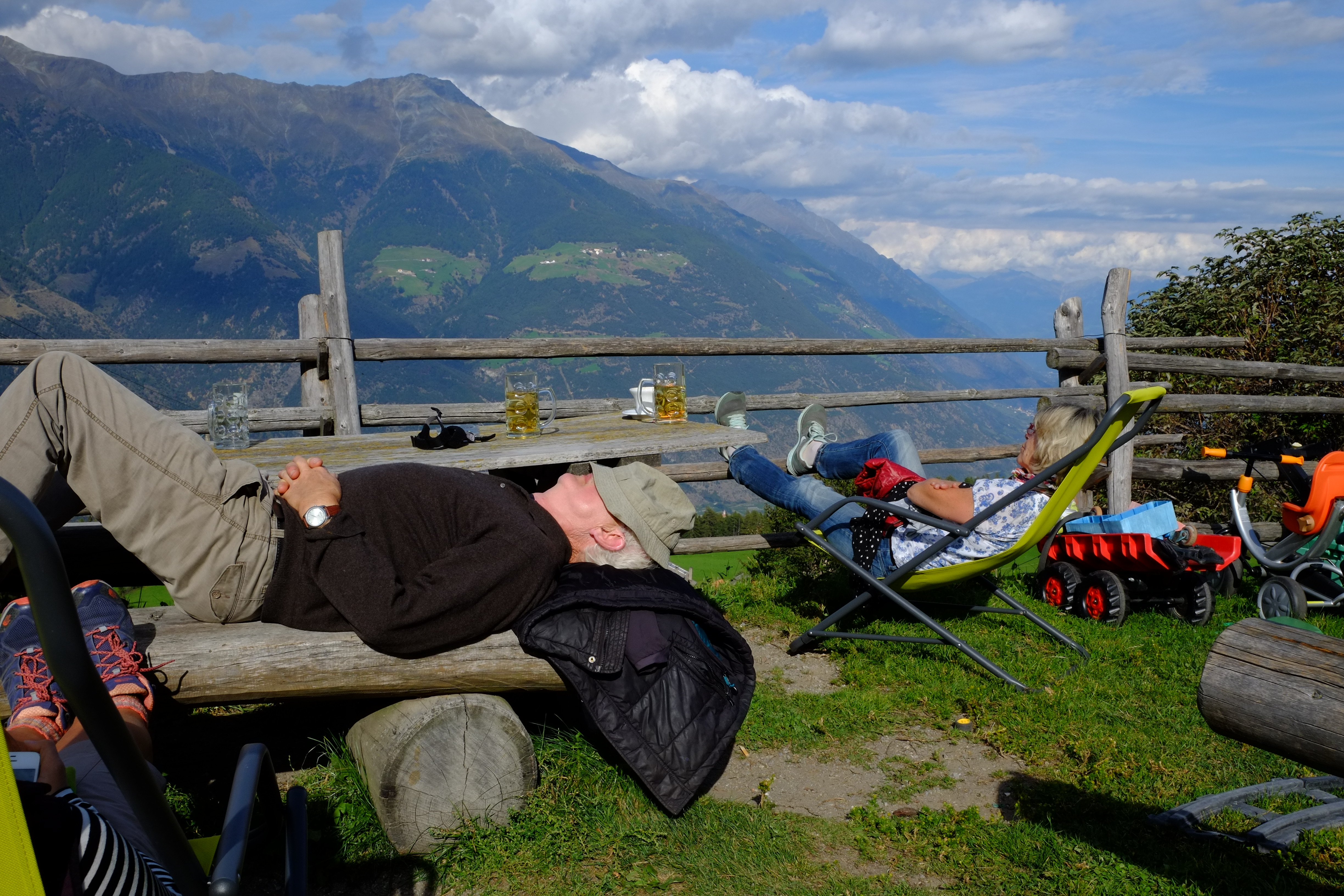 Aber erst verbrachten wir noch eine Woche gemeinsam mit meinen Eltern in Südtirol. Für uns war das purer Luxus, da wir wieder einmal in einem richtigen Bett schlafen durften und das Zelt getrost in den Taschen lassen konnten.