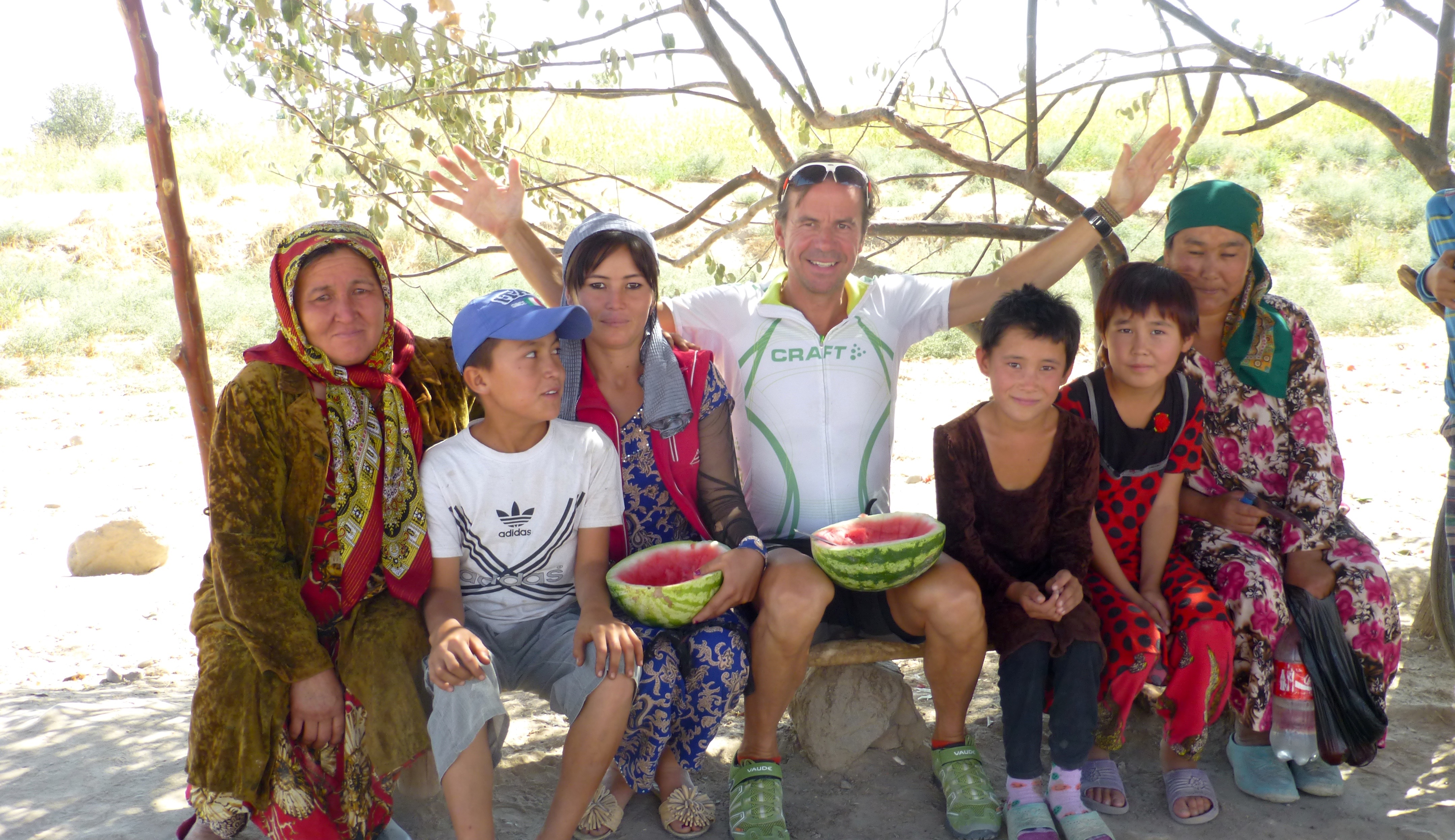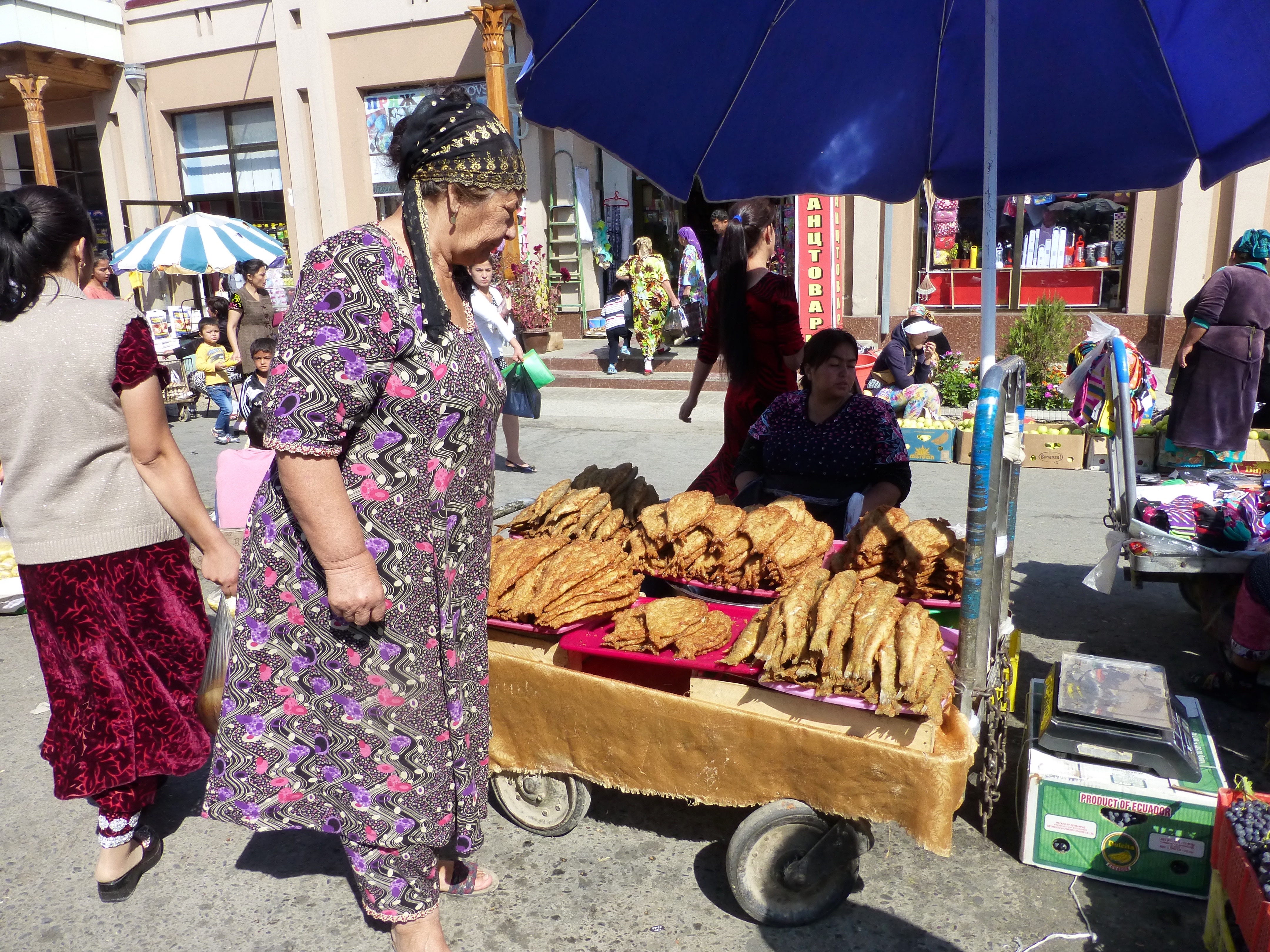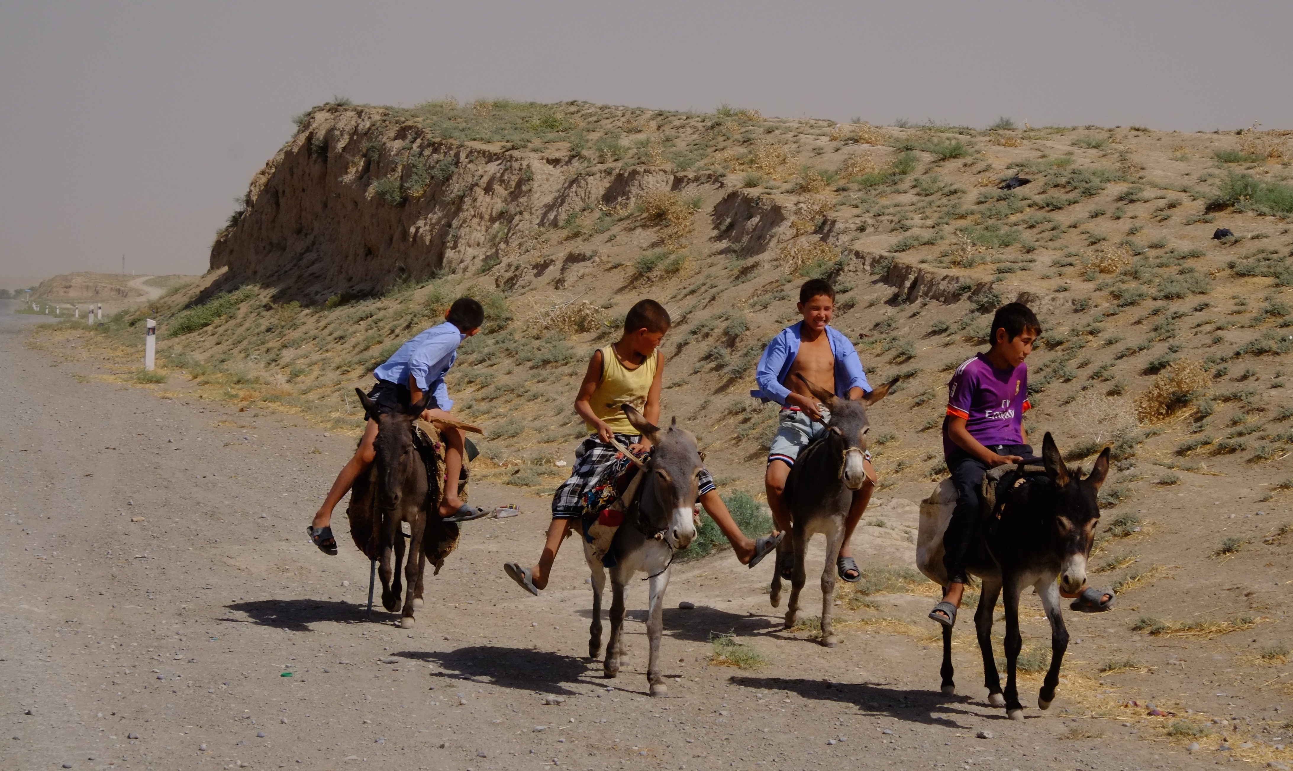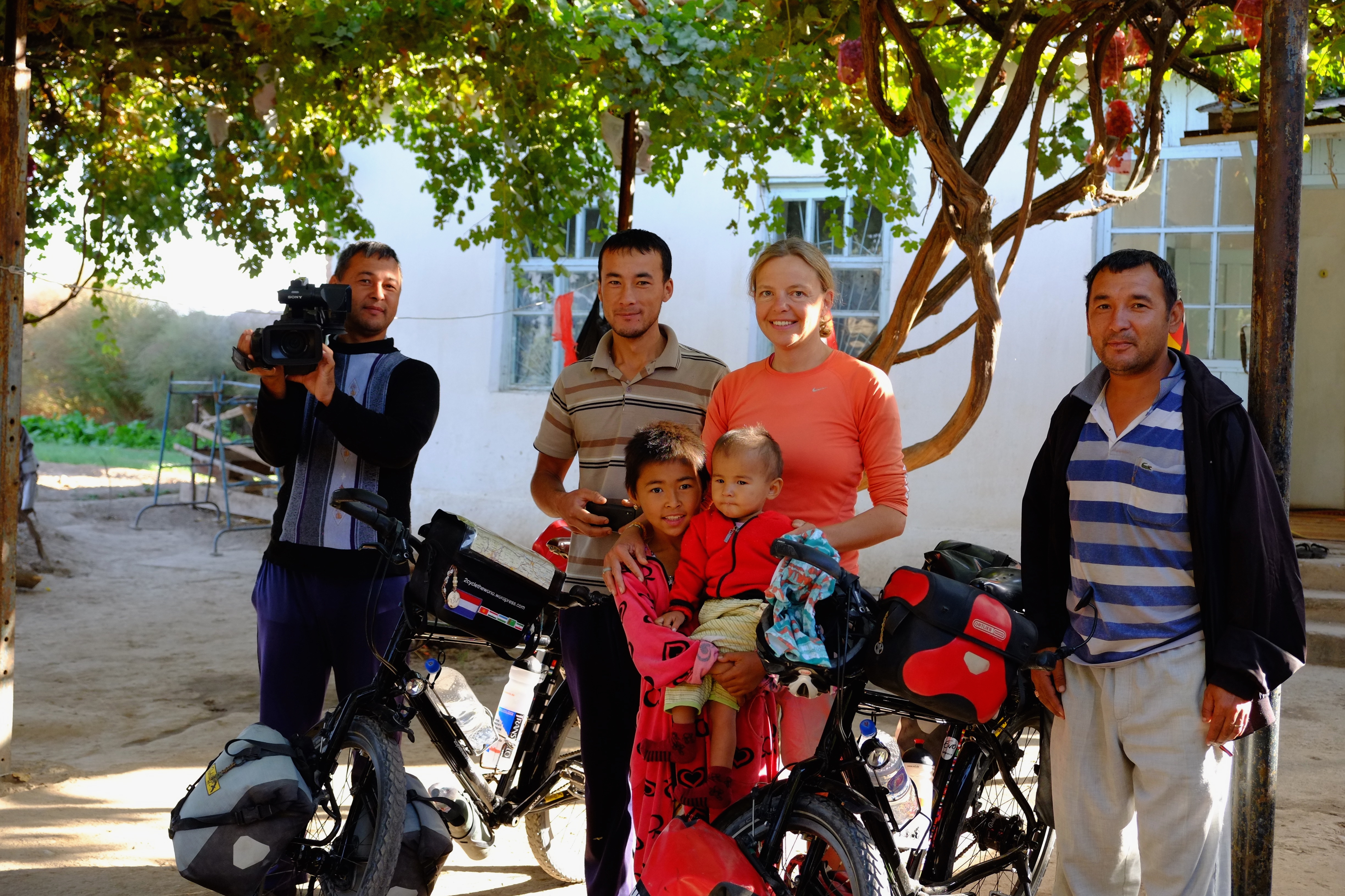 We had a lot of nice experiences and a few bad ones in Uzbekistan. Despite opening up for foreign tourism, the country is still a harshly governed police state. Nonetheless we felt genuinely welcome by people be it through their greetings when we cycled through villages, their gold-teethed smiles, their tea invitations, their children running or cycling happily with us, by those who invited us to stay at their homes and who shared their meals with us and of course by those who gave us fruit or bread when we cycled past. We were deeply impressed by the cities of Samarkand, Bukhara and Khiva with their fabulous architecture, positively surprised by the beautiful landscapes up until Samarkand and less impressed by the landscapes as from Samarkand dominated by vast deserts and cotton plantations. Dating back to Russian times – at least that’s what we assumed – the state administers itself to death. Our passport was stacked with little hotel slips, neatly filled in by the hotel managers, stamped and signed and when Johan got money from a bank he had to sign endless papers that were handed from one person to another, before they would retrieve the dollars.